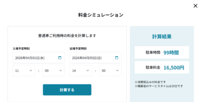 単純に「安くなる!?」と思ったが「???」と思って駐車場の公式ページの料金シミュレーションで試算してみた。時間は昼前に出て昼頃に帰ってくるという時間で計算した。